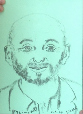 nicht der Porträtierte, der Künstler zahlt den Preis für die Portrait-Zeichnung.